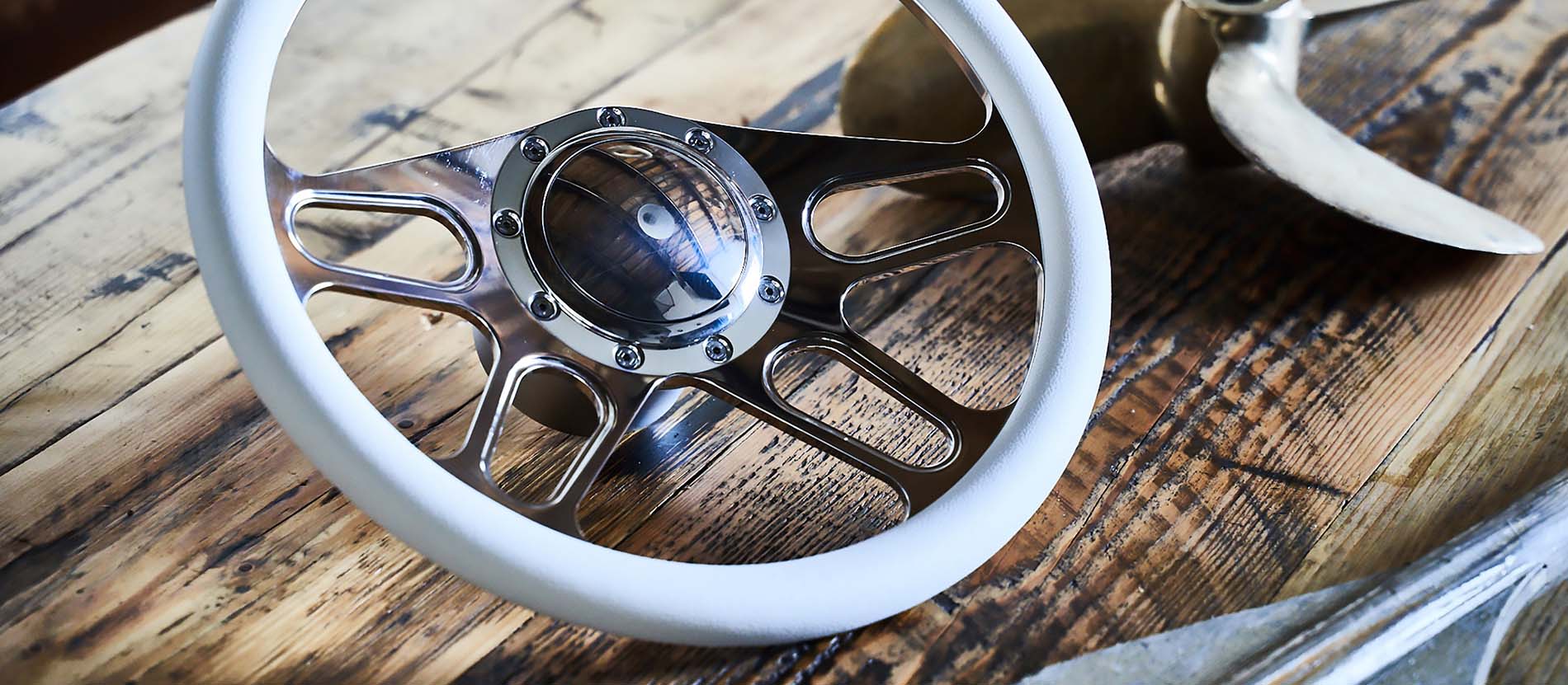 MÖWE MARINE PERFORMANCEBootslenkrad Emden / Aluminium poliert Das Modell EMDEN ist die Innovation in unserer neuen Performance Linie. Mit diesem massiv und aufwendig CNC-gefertigtem Bootslenkrad spielen Sie in einer anderen Liga. Eine Erscheinung und Haptik, die bisher Powerbooten und Yachten der Oberklasse vorbehalten war, jetzt bei Möwe Marine zu einem sensationellen Preis-Leistungsverhältnis. Life is too short - gönnen Sie sich ein Stück Luxus! griffiges Bootslenkrad aus poliertem Aluminium, sportlich und edel zugleich Neuheit: aufwendiges Design, CNC gefertigt im 6-Achsen-Verfahren neues Design von Möwe Marine - Symetrie aus 12mm Doppelstegen, robust in Aluminium gefertigt massive Qualität und äusserst stabile Ausführung / 100% CNC mit hohem Materialaufwand - ohne Kompromisse zentrale Abdeckung als Stecksystem ausgeführt - keine sichtbaren Schrauben integrierter, sehr fein verzahnter, Adapter zur optimalen Ausrichtung passend für alle Teleflex / Ultraflexlenkungen mit Standardkonus und Passfeder Aluminium poliert Lenkraddurchmesser: 350mm Lenkradhöhe: 85mm Gewicht 2,5kg Montage & Passgenauigkeit: Das